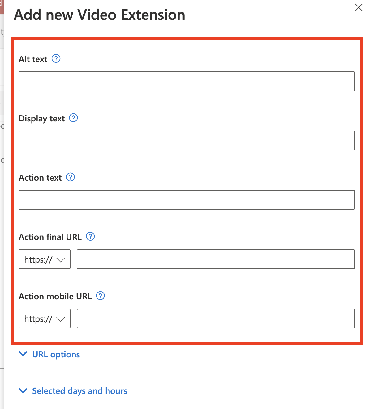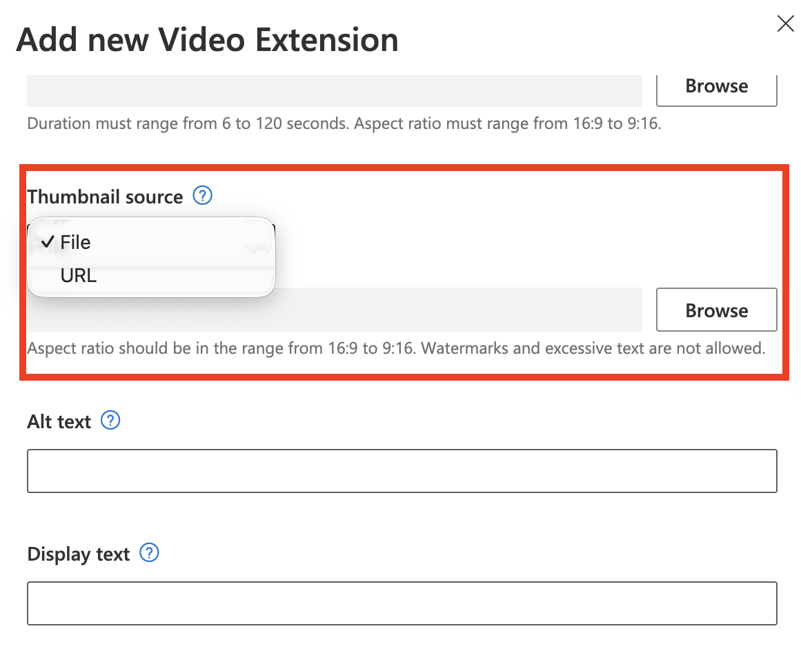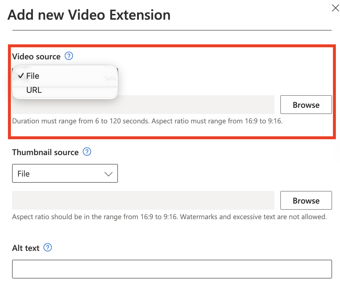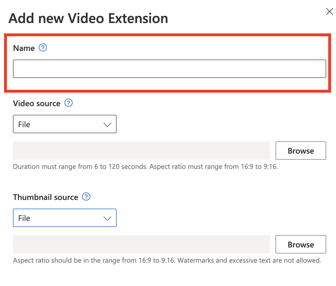 - Add the name of the video extension, which will not be displayed on your ad.