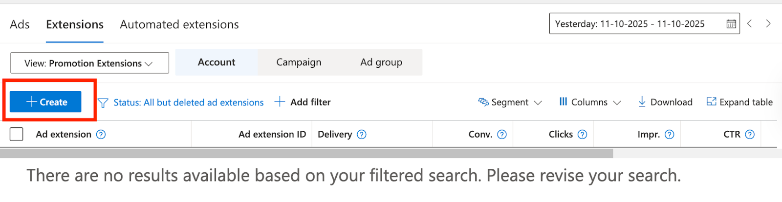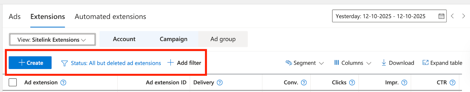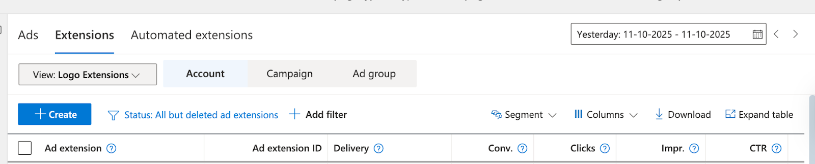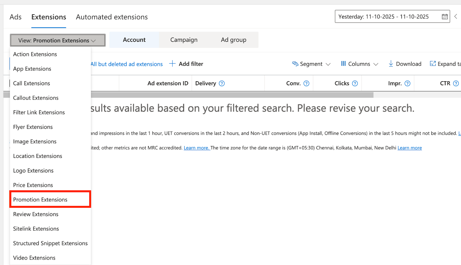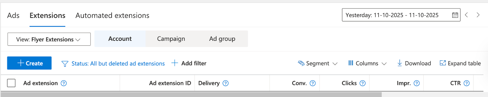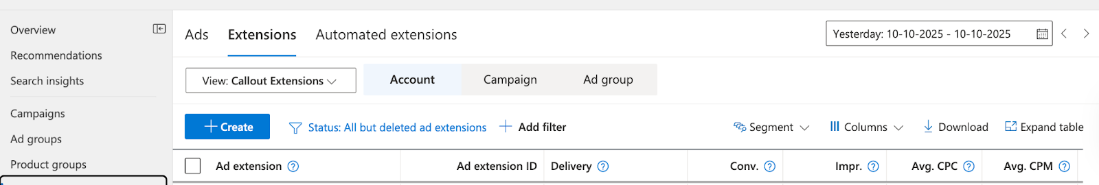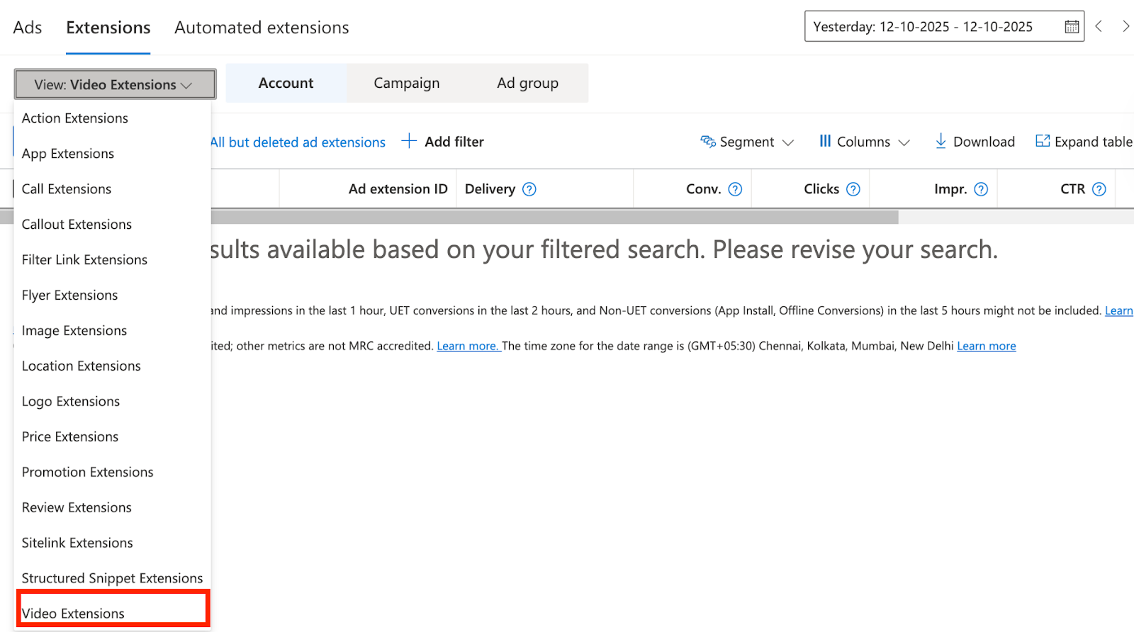 - Choose Extensions at the account or campaign level.