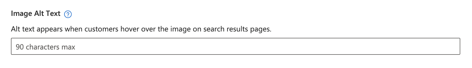 - Next, add image alt text, which features when customers hover over the image on search results pages (90 characters max).