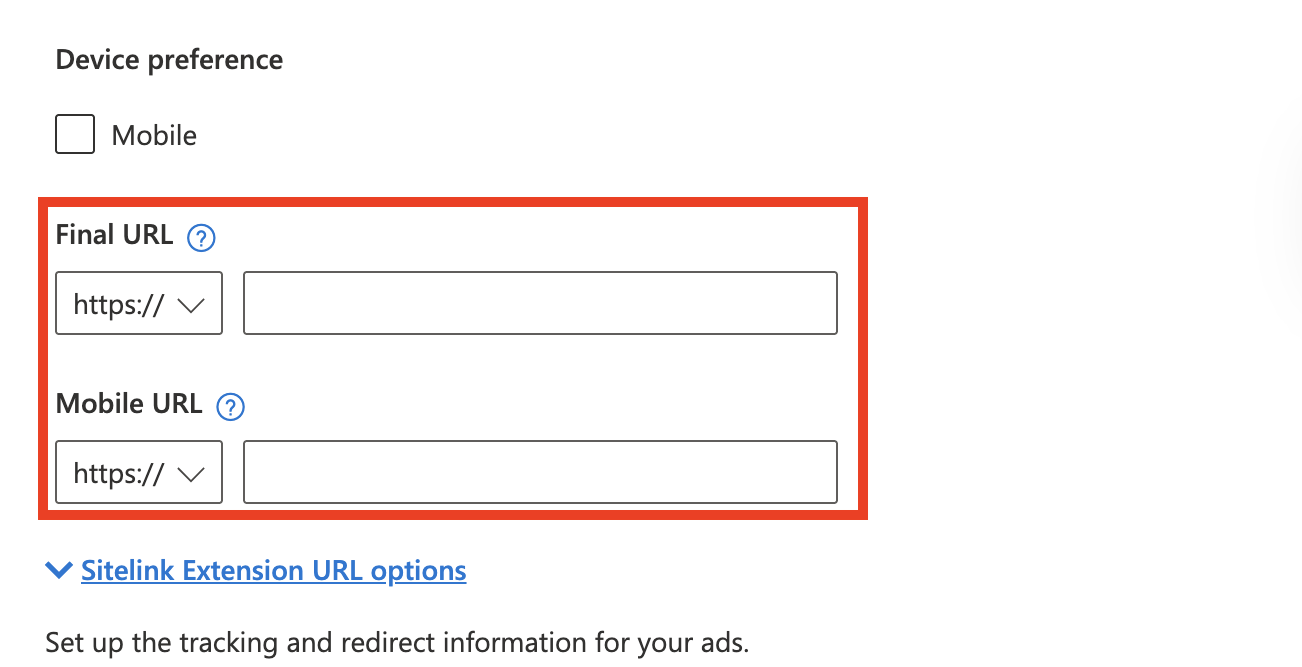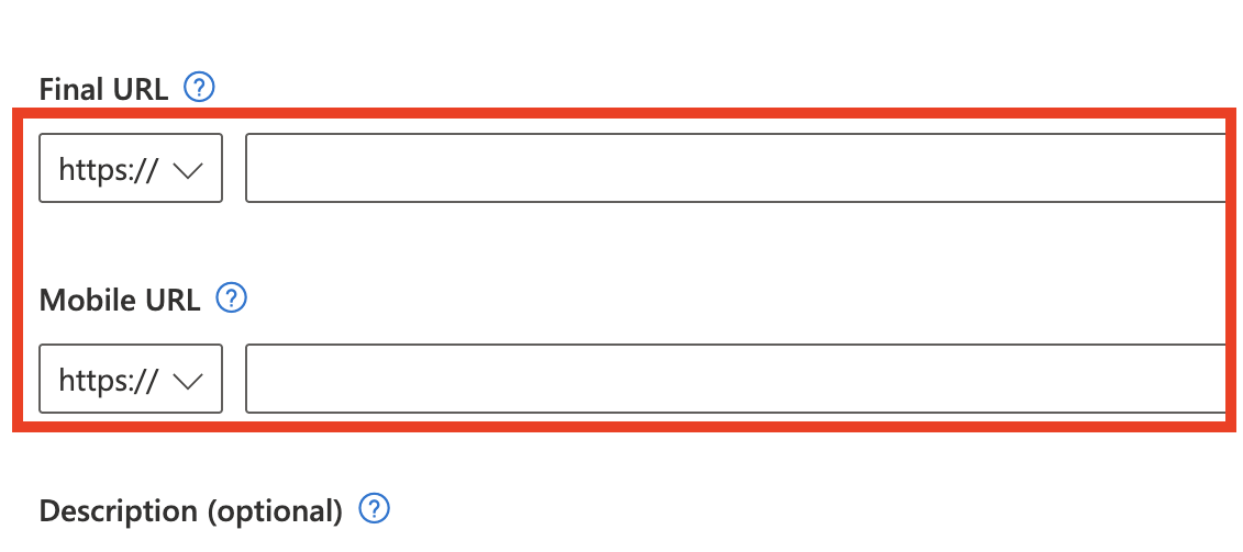 - Then, Final URL and Mobile URL