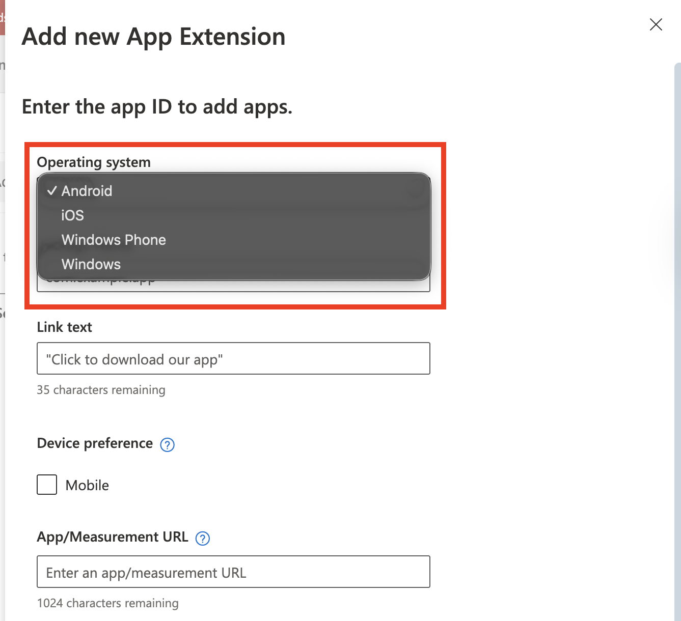 - Choose Operating system (iOS, Windows Phone, Windows or Android).