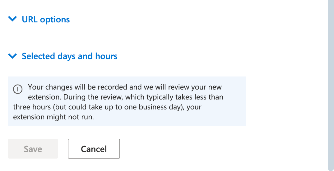 - Set the schedule to run the extension during specific days or times.
