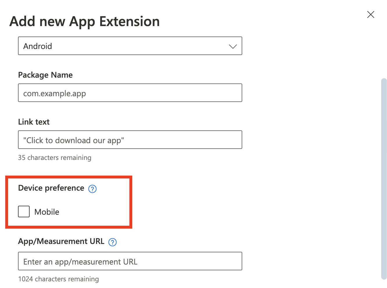 - Enable Device preference if you want it only for mobile users.