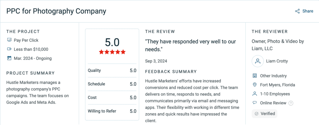 Liam shared his experience by leaving glowing reviews on Clutch and G2, further validating the impact of our results-driven campaigns.