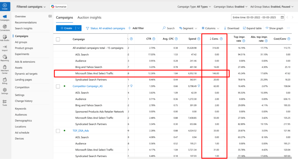 On the other hand, Microsoft’s Search Partner network is way less transparent. It includes some solid names like DuckDuckGo and AOL, but it also has tons of low-quality sites that can drain your budget. The biggest issue? Limited visibility: Microsoft Ads doesn’t always tell you exactly where your ads are running, and unlike Google, opting out is more complicated.